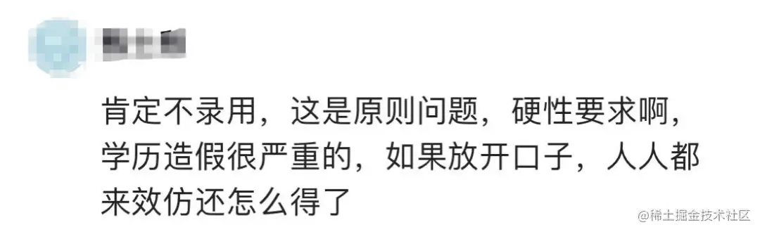 另外,有网友说,背调红线就是诚信。造假就是不想努力还想享受别人努力后的成果,这样的员工,公司敢用吗?