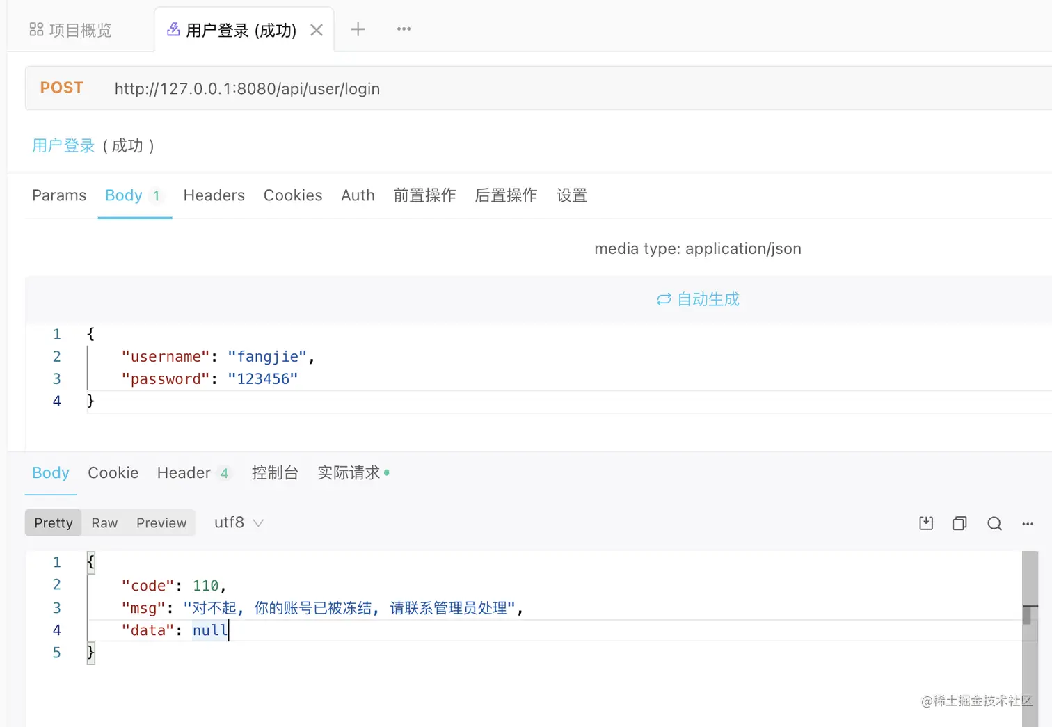 raise Exception("对不起, 你的账号已被冻结, 请联系管理员处理")