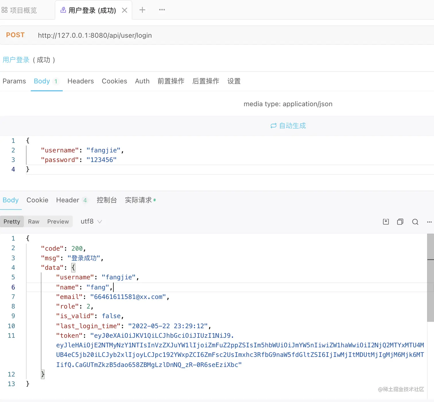 上面的token只是我们mock的一个数据,准确来说,token应该是一个加密字符串,token解密后,可以得出用户的信息,这里token的生成,我采用的是JWT实现方式,全称是JSON Web Token