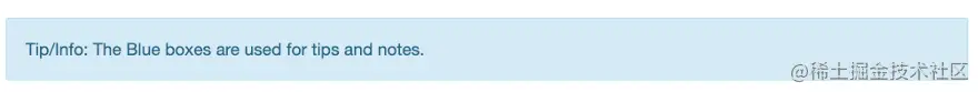 <b>Tip:</b> Use blue boxes (alert-info) for tips and notes.