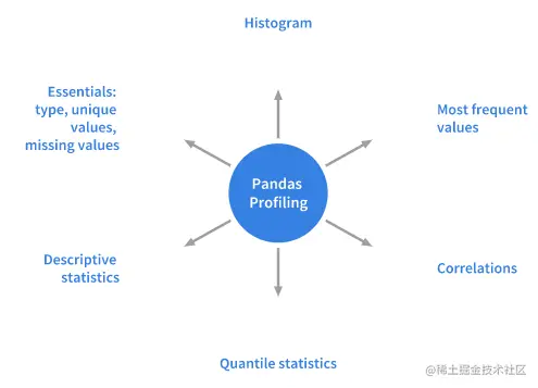 对于给定的数据集,Pandas中的profiling包计算了以下统计信息: