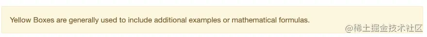 <b>Example:</b> Yellow Boxes are generally used to include additional examples or mathematical formulas.