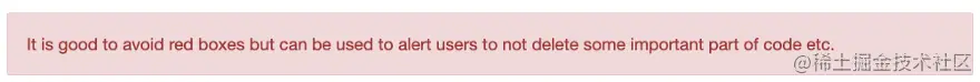 It is good to avoid red boxes but can be used to alert users to not delete some important part of code etc.