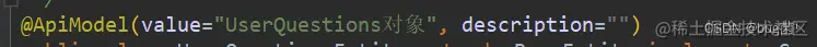 比如生成的实体类,原生自带的是默认以这种格式给我们创建的。这肯定不是我们所想要的,也是一种不负责任的写法,我们不仅要修改@ApiModel的value且describtion都得一并修改成能不是开发的人员都能一眼看懂。