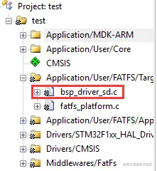 中间层FATFS模块:实现了FAT文件读写协议;它提供了ff.c和ff.h文件,一般情况下不用修改,使用时将头文件包含进去即可