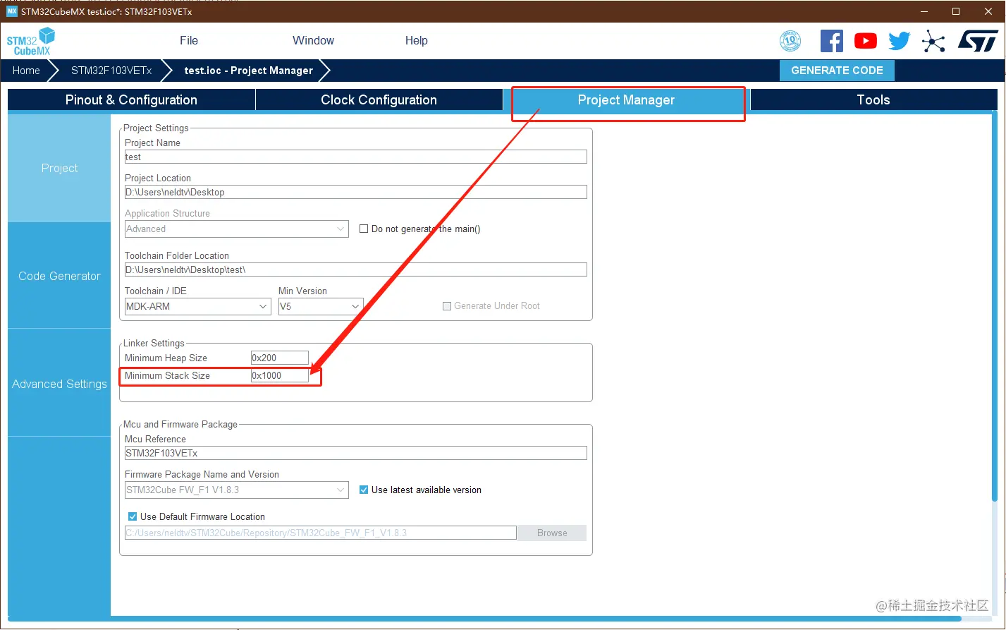 点击 GENERATE CODE 生成代码