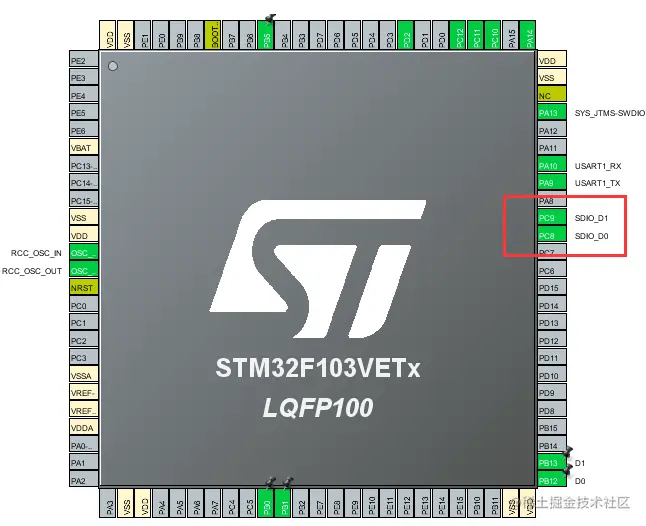 此时 SDIO 对应的管脚也被选中。