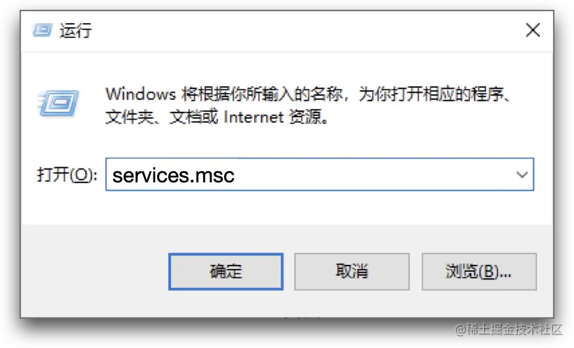 1.按Win+R组合键打开运行窗口,如下图所示,输入services.msc命令