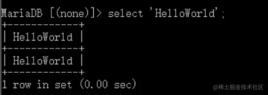 2.再次执行测试的SQL 命令 select 'HelloWorld';