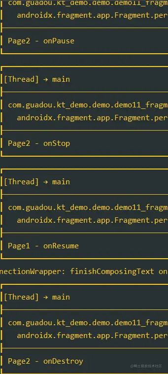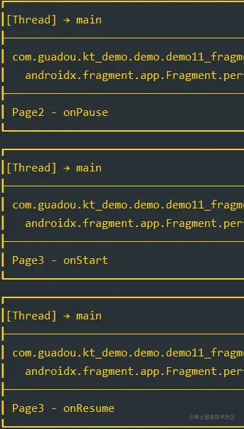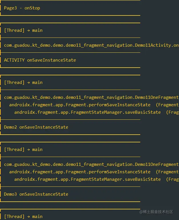 跳转到fragment3之后,我们退出到后台,然后不保存活动,重新进入Activity,打印出重建回调如下: