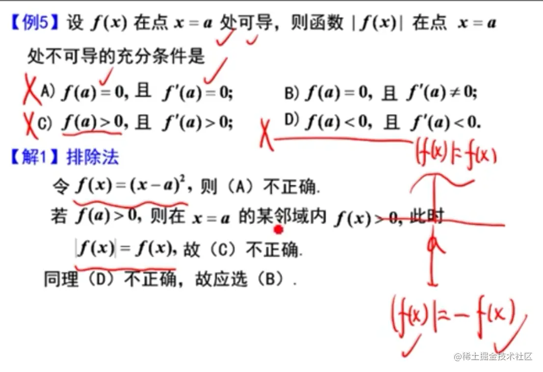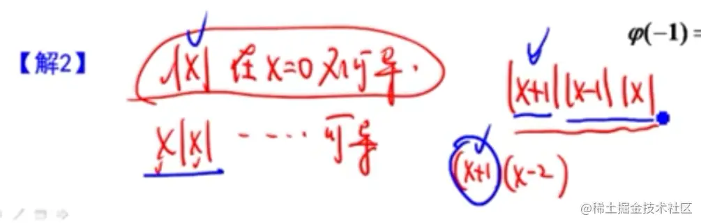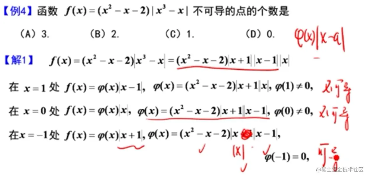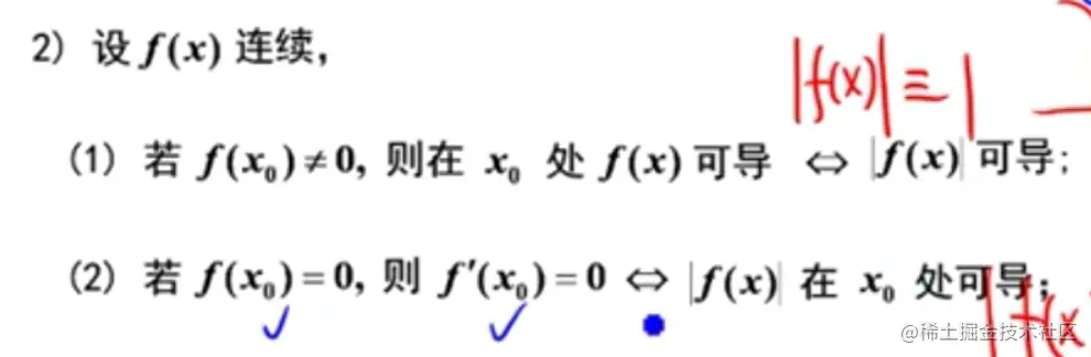 - 参考李正元例2.22、2.23,函数与绝对值函数的可导性的关系