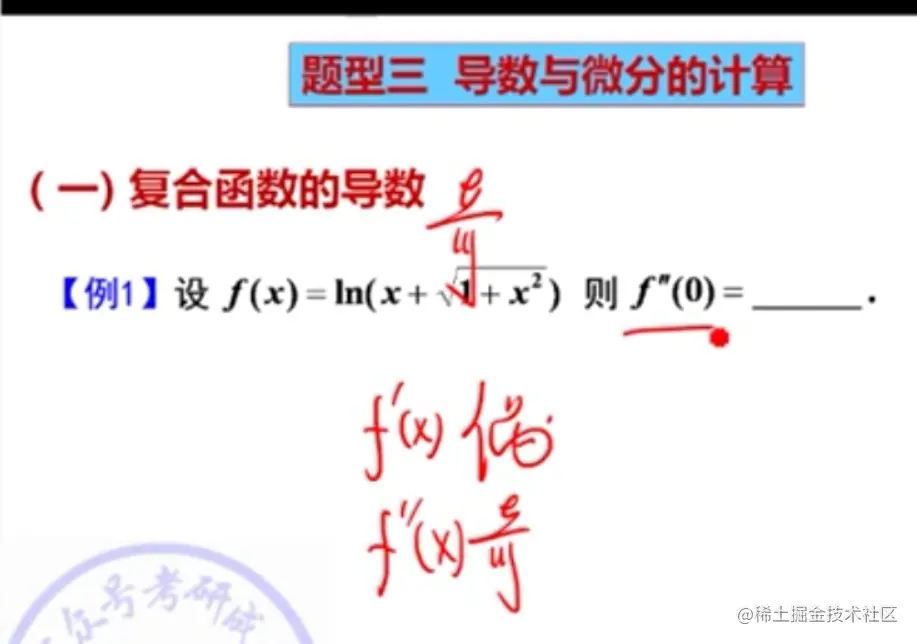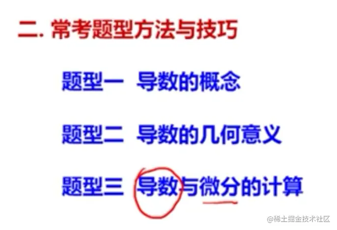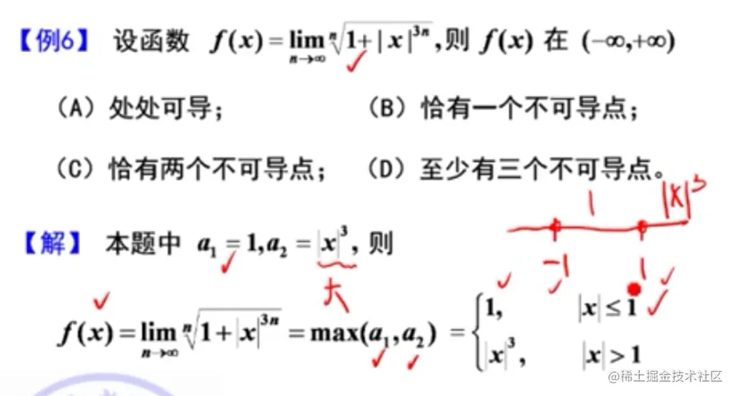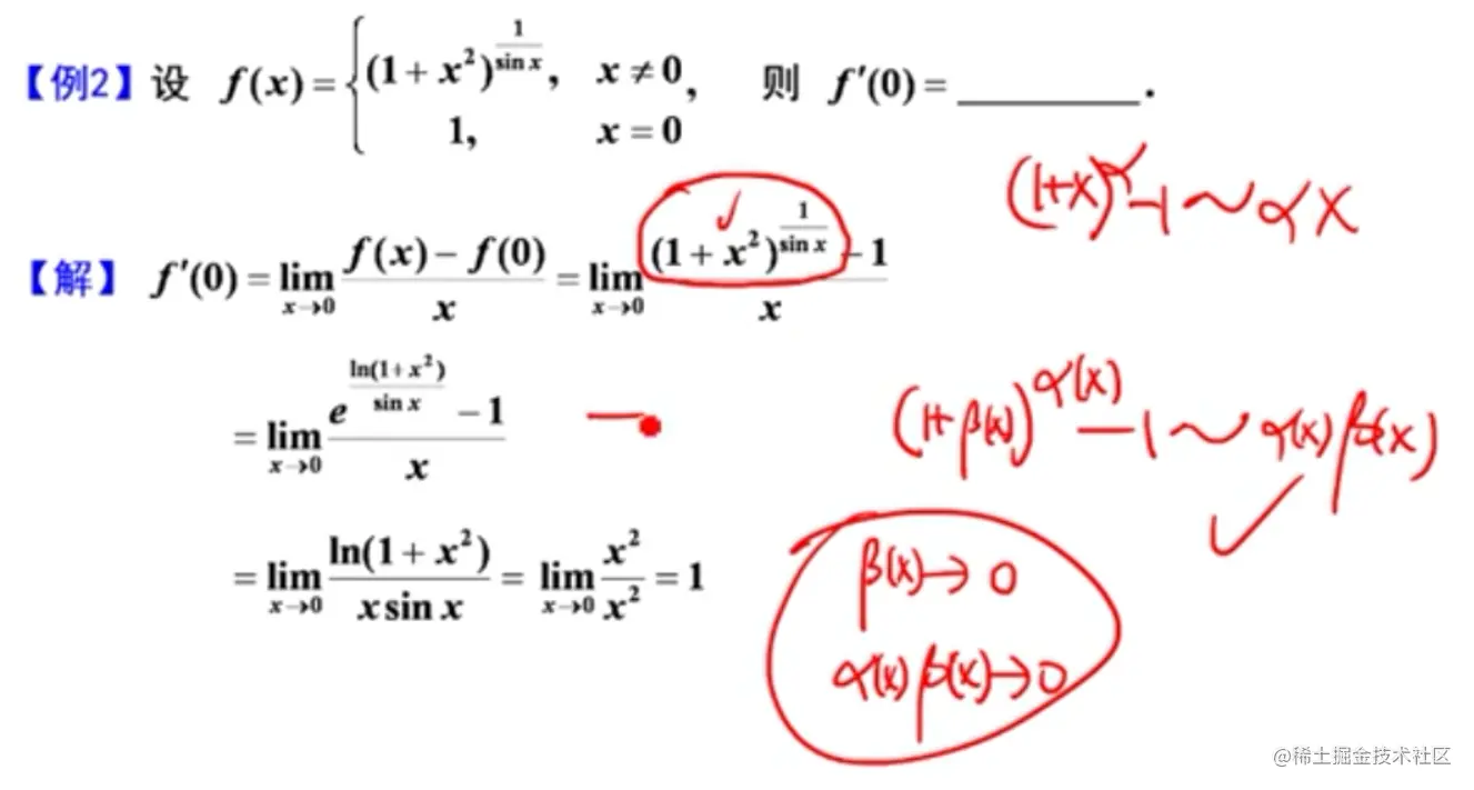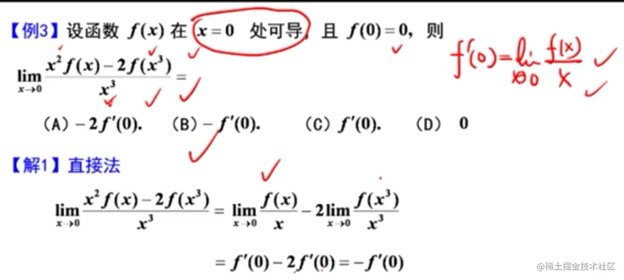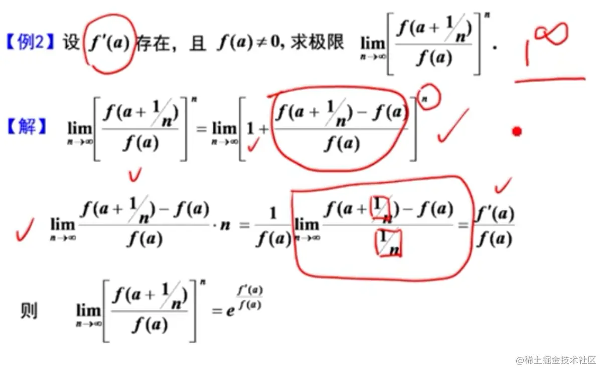 - 注意个别题不是分段函数,但是导函数在某些点无定义,所以要单独求那个点的导数,比如:李正元例2.7(Ⅱ)