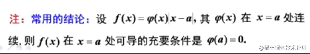 - 更广泛一点的结论:李正元例2.24,不一定是乘,只要乘一个在该点连续且不可导的函数都有这个结论