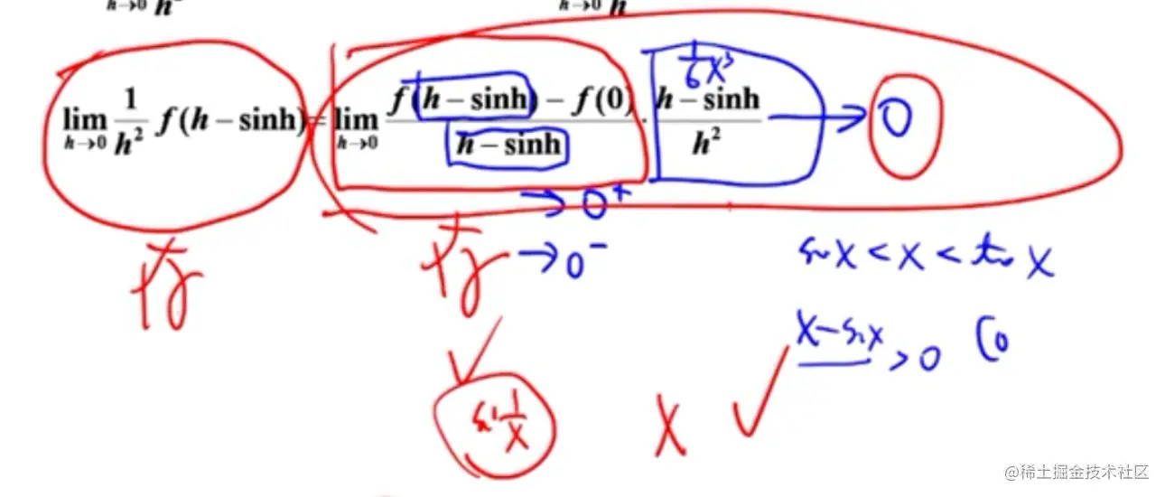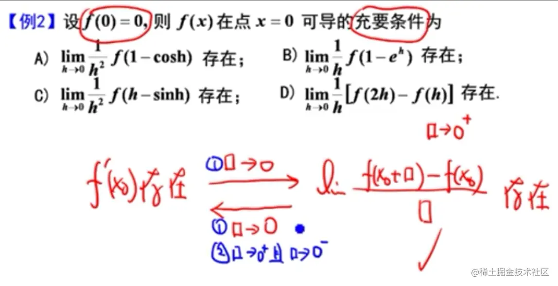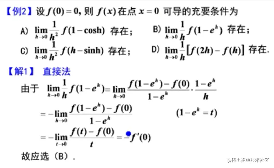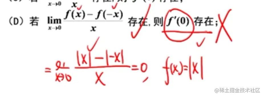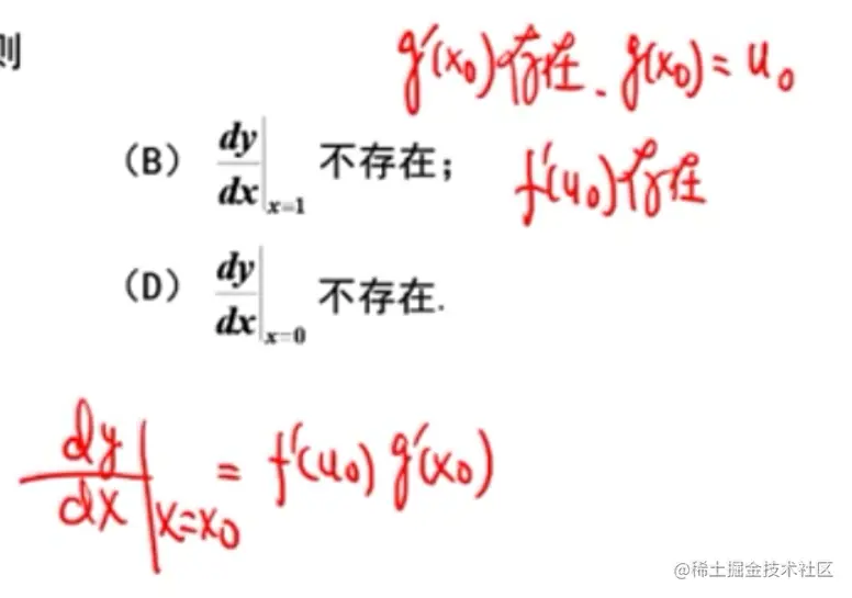 - 后一个因子趋近于0,所以无法说明前一项(导数)存在