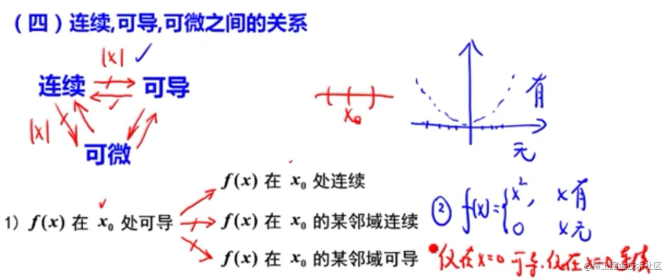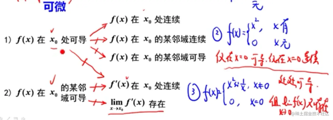 - 处可导能推出处连续,但是推不出邻域连续,也推不出邻域可导