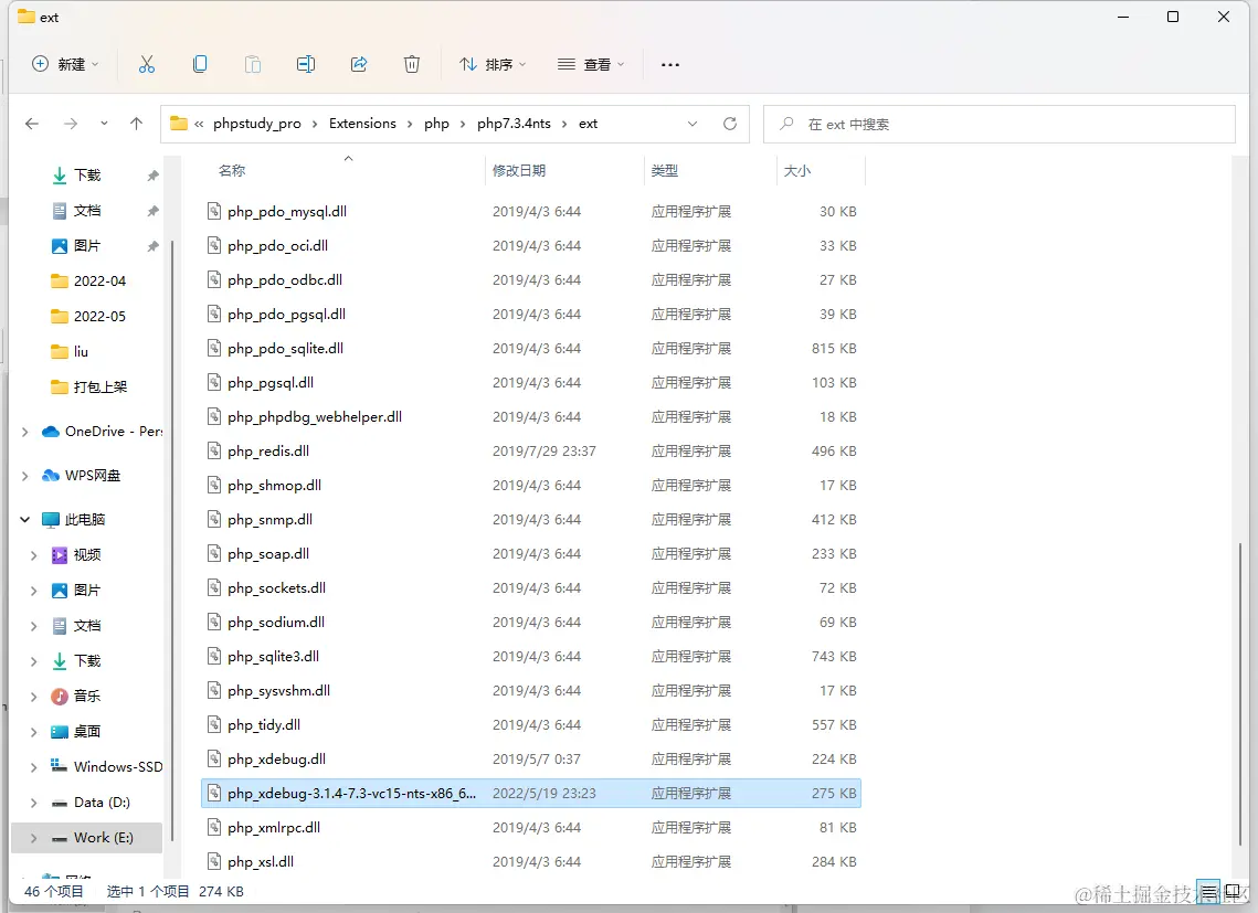 - 将下载的文件放入到对应 php 版本的扩展文件夹中