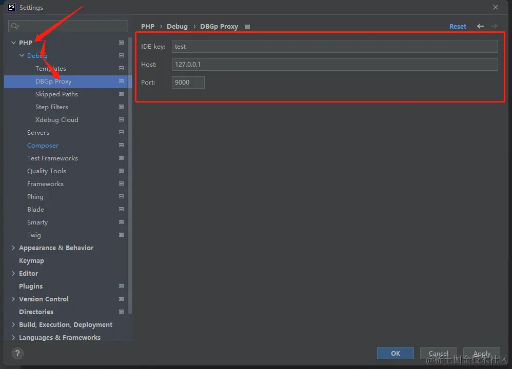 - 选择 PHP-Debug,将里面的端口修改成和 php.ini 里面的端口一致