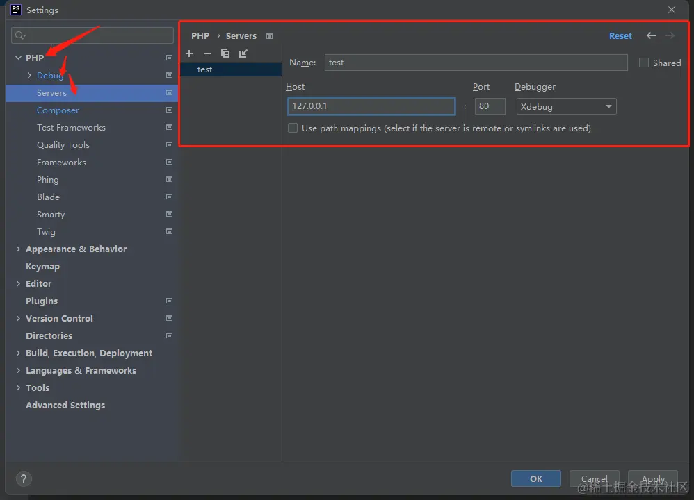 - 配置 xdebug key, 确保端口和地址还有 key 必须和 php.ini 中的配置对应,IDE key 随便填写。