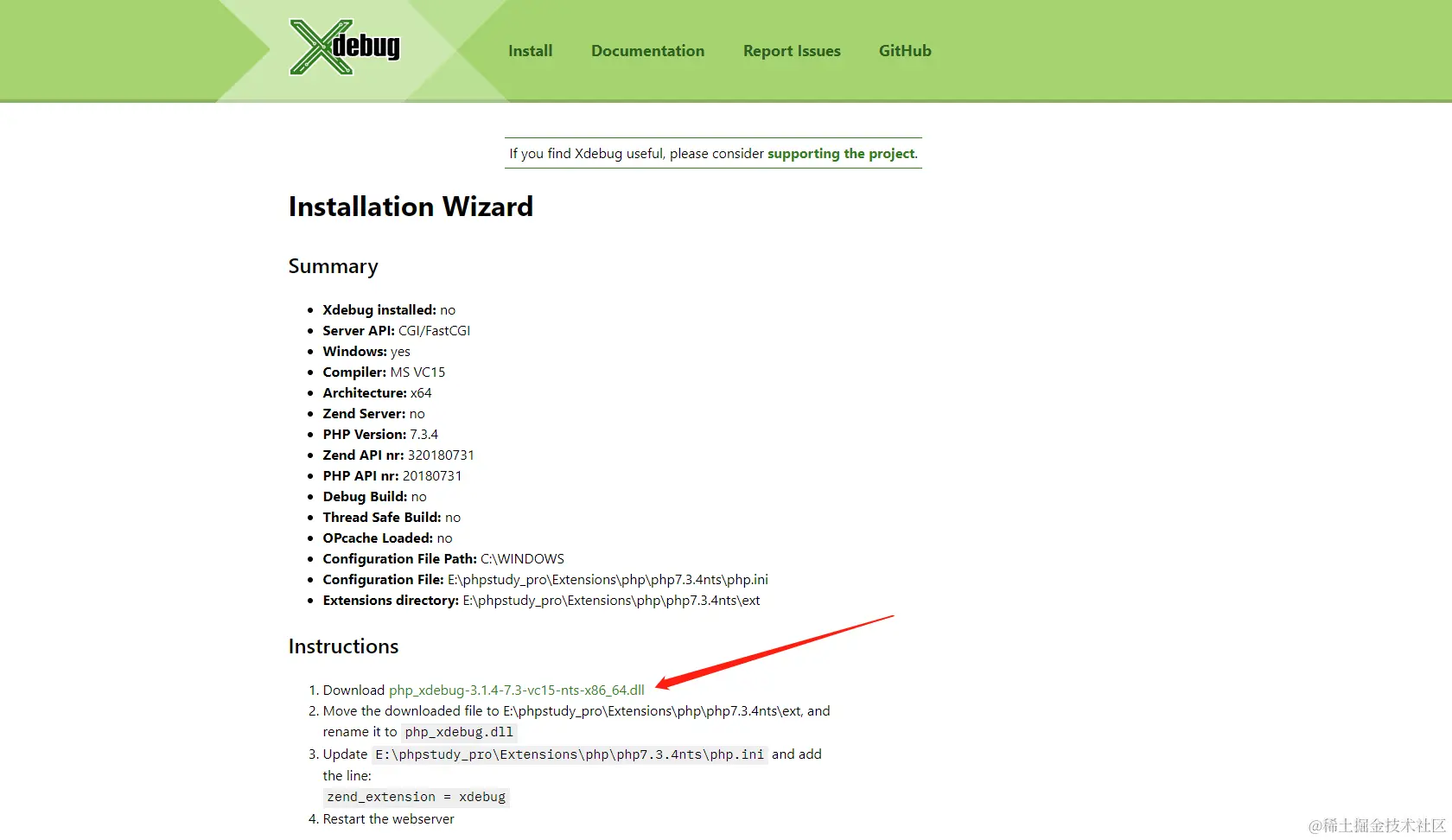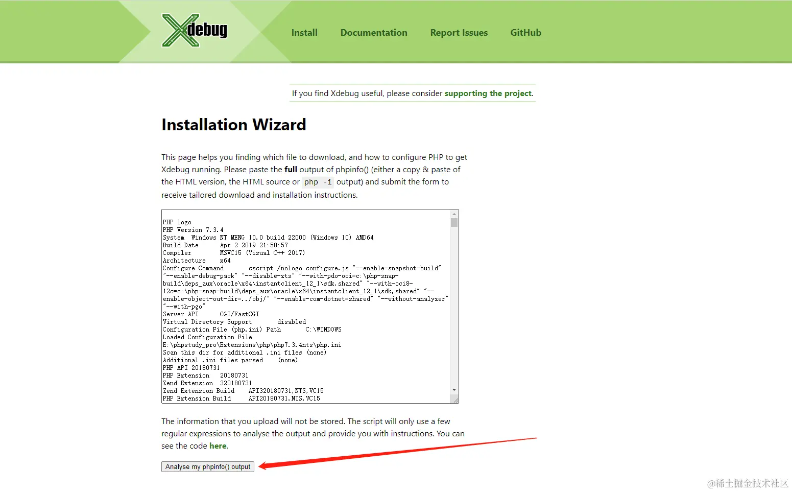 - 打开 xdebug.org/wizard 站点将复制的内容全部填写进去,点击 “Analyse my phpinfo () output” 按钮进行检测 php 对应扩展