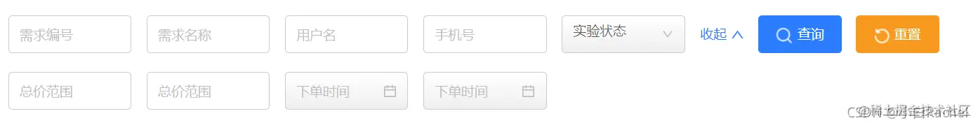 本文已参与「新人创作礼」活动,一起开启掘金创作之路。 上节我们写过了【搜索】表单,以及查询、重置功能。本节对于需要展开收起效果的查询表单 进行概述,主要涉及前端样式知识。