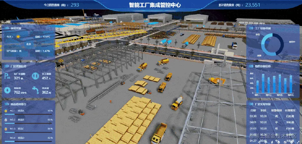 随着5G、云计算、物联网和大数据等技术的应用,智慧工厂已经成为产业关注的焦点,企业将持续建设“智慧工厂”。基于数字孪生、WebGL技术的3D可视化引擎——Sovit3D,可助力企业快速构建智慧工厂三维可视化平台,拖过在线拖拉拽模型组件的方式,轻松搭建工厂三维场景,通过三维可视化手段对工厂各类设备进行三维建模,真实复现设备设施外观、结构、运转详情,并基于数据驱动,接入实时采集的数据,实现设备模型的动效,还原工厂真实运行逻辑场景,优化资源利用率,降低企业厂区运营成本。通过中央实时可视化大屏,将涉及生产的各项信息汇总到一起,提升管理者综合分析决策能力,展现企业管理新形象。