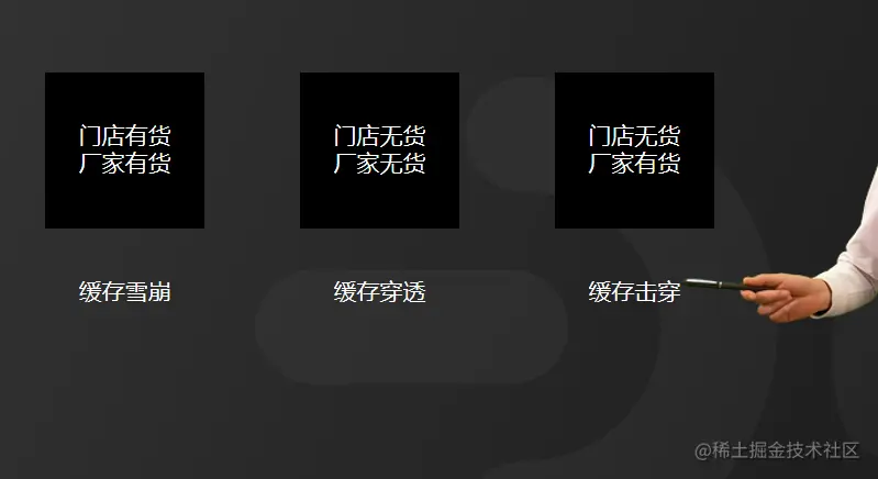 缓存雪崩就是,门店和厂家都有存货,但是卖得实在是太火爆了,排队的人太多导致门店一时间无法承受这么大压力,因此排队的用户就都去找厂家买了,从而导致厂家短时间内也要承受了很大的压力响应不过来。