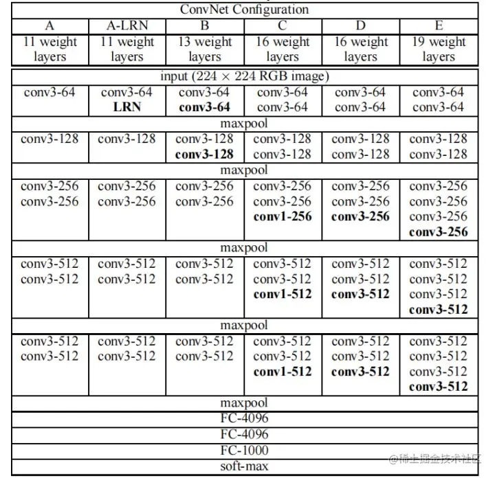 例如下方的VGG-16。层数为:2+2+3+3+3(卷积层) + 3(全连接)。中间5层最大池化都是不算的。
