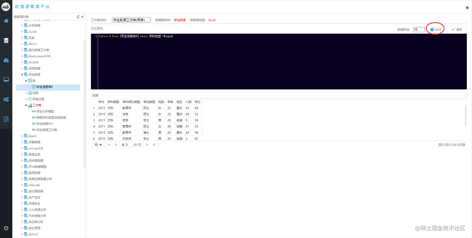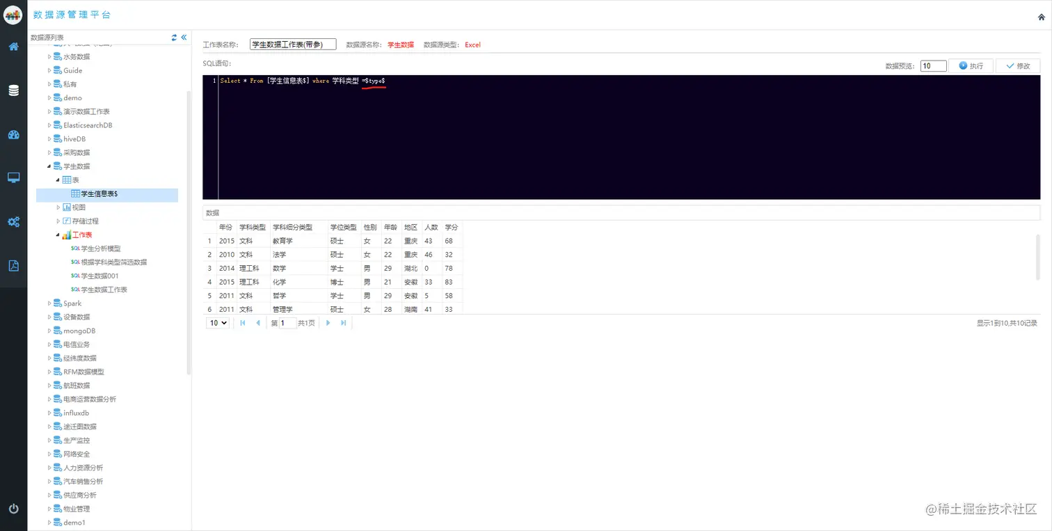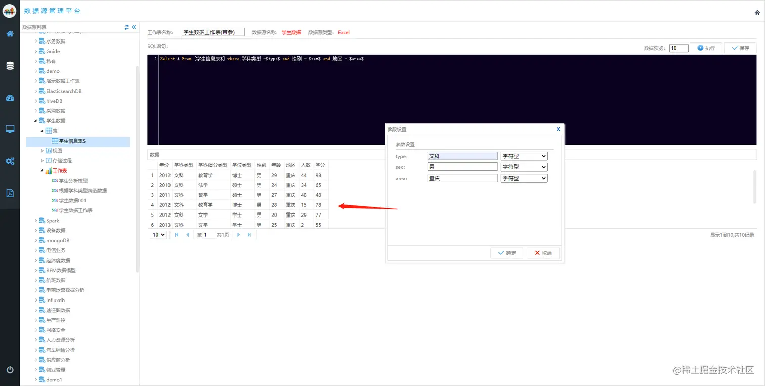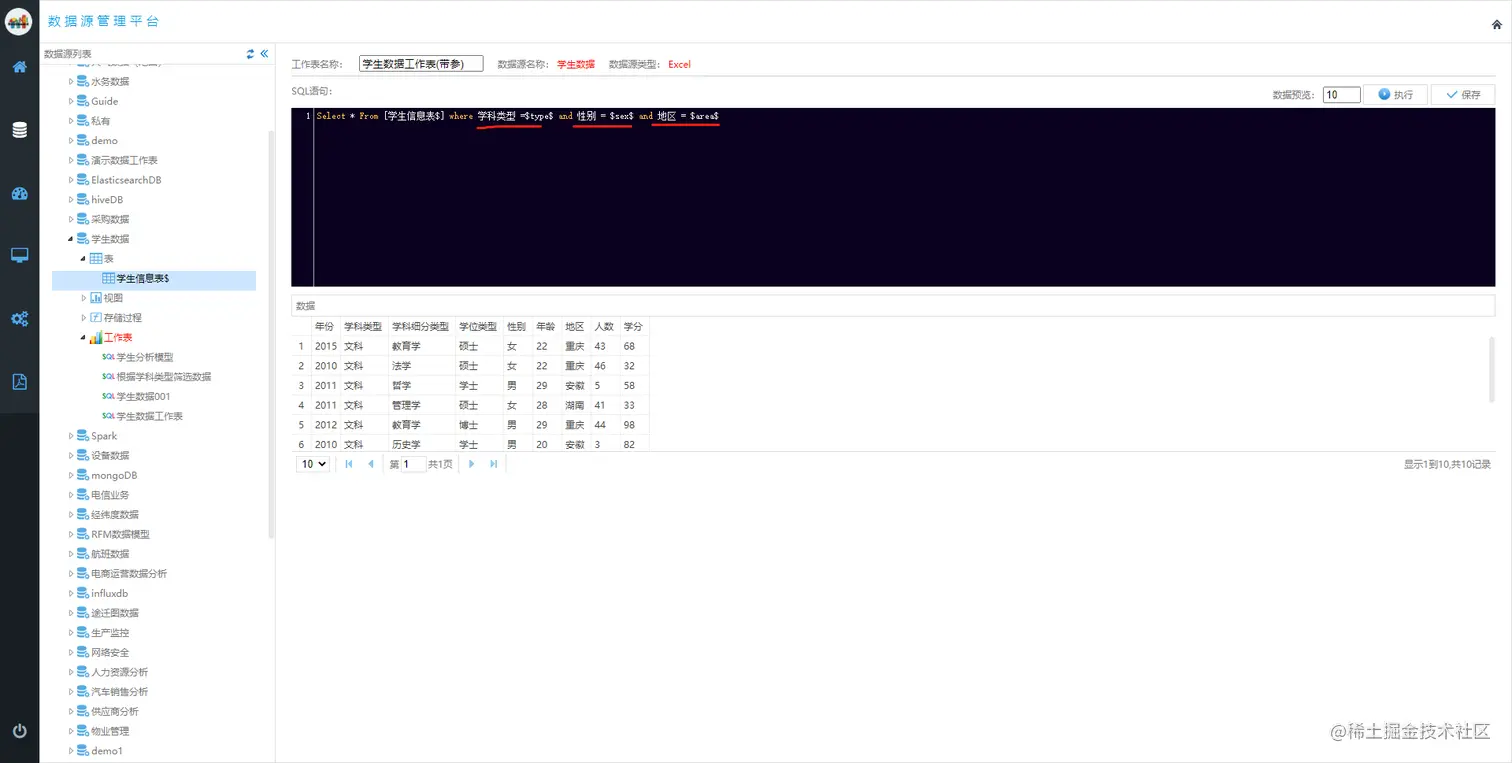NBI可视化平台快速入门教程(三)带参工作表创建 NBI可视化 2022-05-31 115 阅读1分钟 NBI可视化平台快速入门教程(三)带参工作表创建 1.如何创建带参工作表 参数格式 参数名称参数名称参数名称,比如 2.测试验证带参工作表是否正确 3.输入测试参数 4.多参数演示,多参数查询无非就是按照参数格式标准多接入几个查询条件,如 5.测试验证 6.测试无误后,保存即可。 工作表的作用在于给NBI可视化构建模块提供数据支撑,为图形组件提供数据。