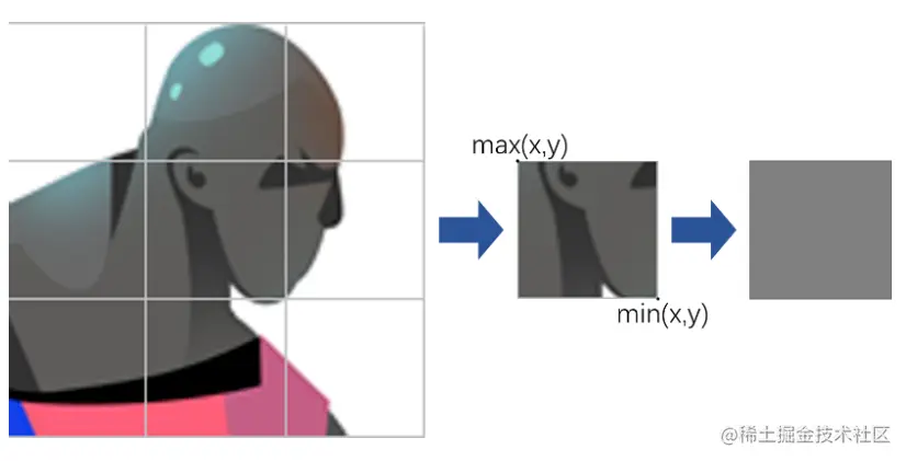 - 获取每个小方格左上角的最大坐标及右下角的最小坐标,以确定小方格的区域。并根据每个小方格内的所有像素点数据统一该区域的像素,统一方式可以是取该区域内像素点的平均值,或者随机选取一个像素。