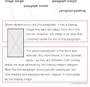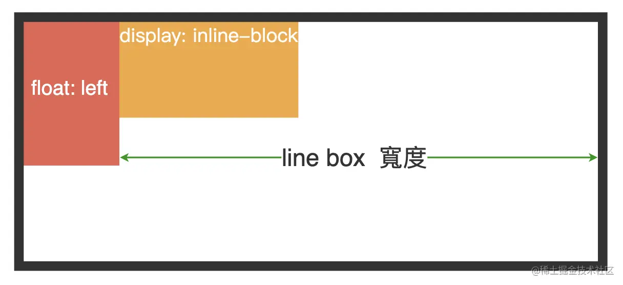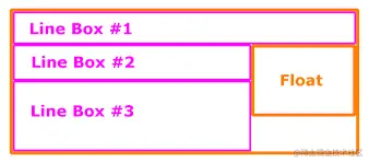 见下图,如果增加一个浮动元素,浮动元素将会浮动到最左边,同时所占据的 line box 宽度被压缩,没有被影响的 line box 宽度不变