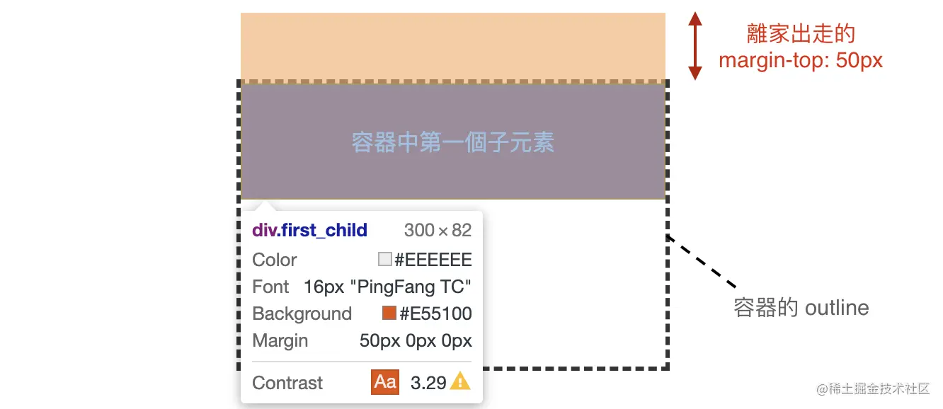 这一个规则即使是在有 浮动元素 存在的情况下也成立,这里后面的 浮动 中有介绍
