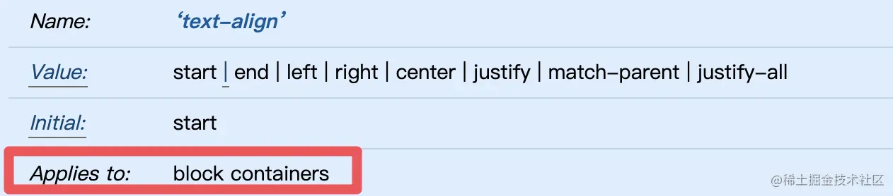 - 当一个 line box 里面的内容宽度比 line box 的宽度还要少的时候,那么通过 text-align 来决定他们的水平方向对齐方式。也就是说,对齐影响的是内容在 line box 中的分布