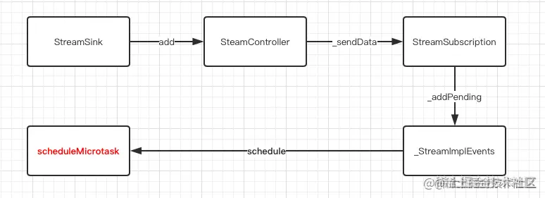 默认的在 Dart 中,如 点击、滑动、IO、绘制事件 等事件都属于 event 外部队列,microtask 内部队列主要是由 Dart 内部产生,而 Stream 中的执行异步的模式就是 scheduleMicrotask 了。
