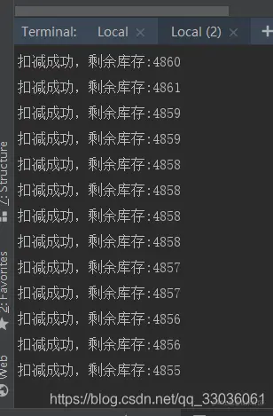 str="扣减成功,剩余库存:"+realStock;
