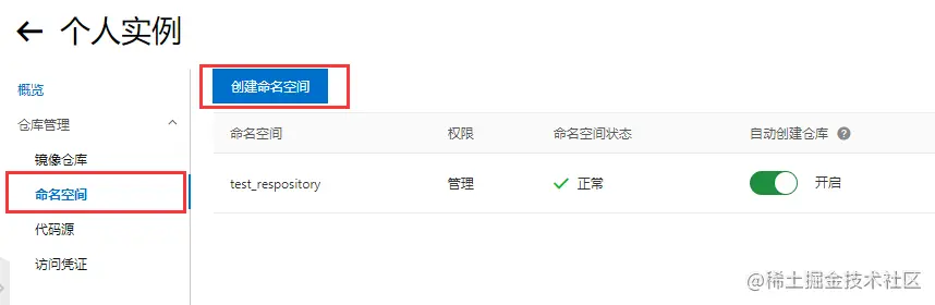 开通后进入管理控制台,点击左侧的命名空间,创建一个命名空间: