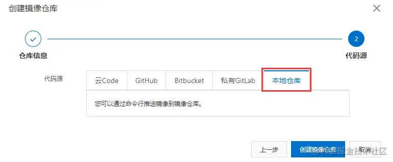 选择刚刚创建的命名空间,并填写仓库名称:
