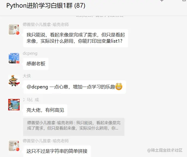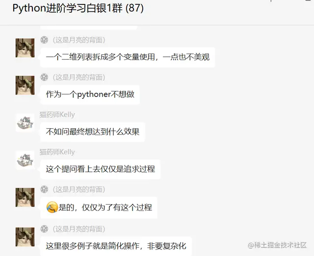 最后感谢粉丝【大侠】提问,感谢【dcpeng】、【瑜亮老师】、【月神】给出的具体解析和代码演示,感谢【黑脸怪】、【冫马讠成】、【猫药师Kelly】、【PI】等人参与学习交流。