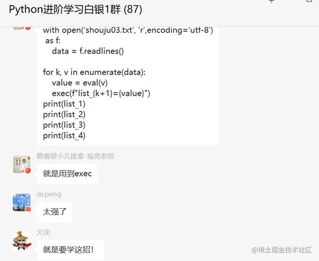 这里【瑜亮老师】也给出了一个代码,也用到了exec()函数,如下所示: