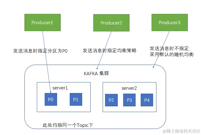 也可以通过指定均衡策略来将消息发送到不同的分区中
