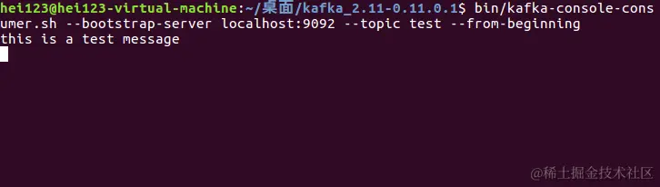 bin/kafka-console-consumer.sh --bootstrap-server localhost:9092 --topic``test --from-beginning