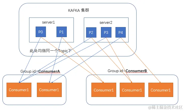 从上图中就可以看出同一个Topic下的消费者和生产者的数量并不是对应的。