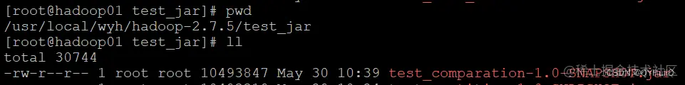[root@hadoop01 test_jar]# hadoop jar test_comparation-1.0-SNAPSHOT.jar wyh.test.comparation.ComparationJobMain