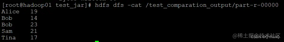 [root@hadoop01 test_jar]# hdfs dfs -cat /test_comparation_output/part-r-00000