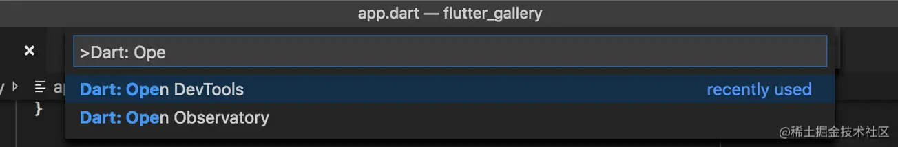 VS Code命令控制板中将会显示Dart: Open DevTools