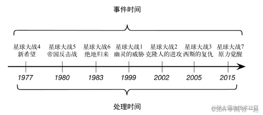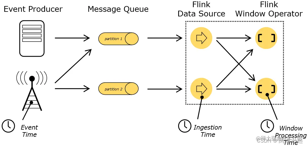 在Flink的流式处理中,会涉及到时间的不同概念,如下图所示: