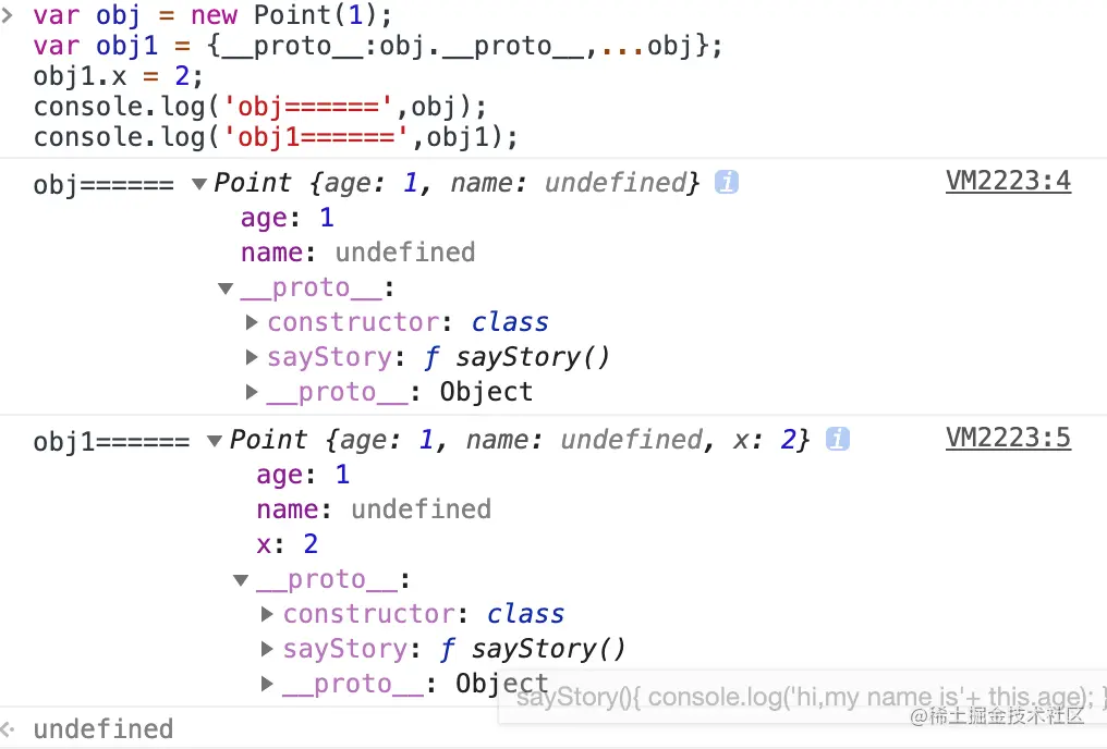 var copy = Object.assign({ __proto__: obj.__proto__ }, obj); // 输出{x:1,y:2}