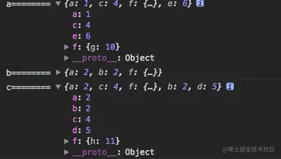 扩展运算符是拷贝第一层, 新生成的对象和合并的对象无引用关系。