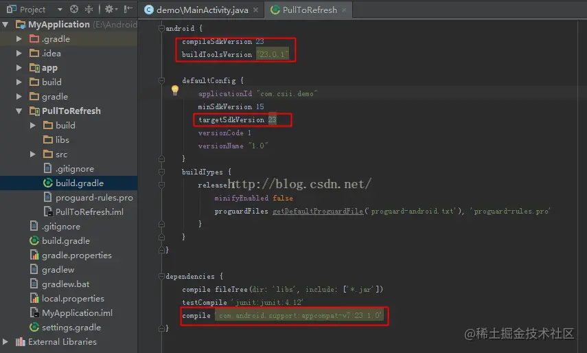 - 在build.gradle中查看编译版本;