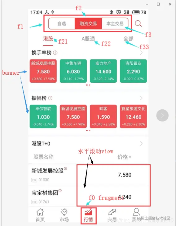 顺便说一下这个界面,有下拉刷新,水平滑动需要切换viewpager页面, banner一个页面时不循环,不能滑动,多页面时循环轮播,水平滑动view滑动时需要与同类型的item实现联动,水平滑动view滑动到头时再滑动可以切换 viewpager,,两层viewpager,子viewpager不能滑动时,则外层的viewpager可以滑动。如果有人说一个页面有同向滚动是不太合理的需求,请问下面这个界面该如何吐槽了。。。 三层水平滑动控件,下拉刷新控件+recyclerview , 固定频率刷新界面