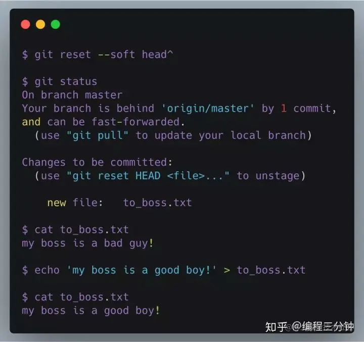 如果你发现刚刚的操作一不小心commit了,所幸你还没有推送到远程仓库,你可以用reset命令来撤消你的这次提交。